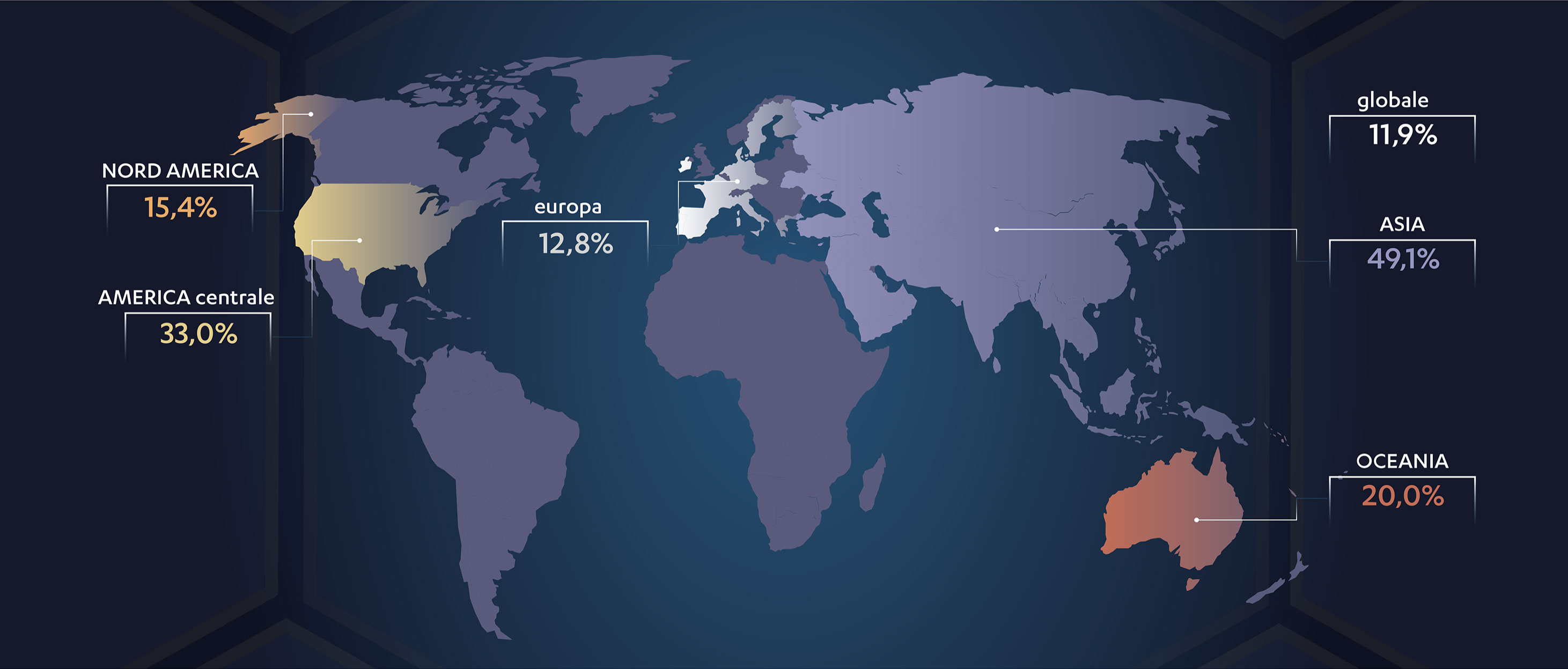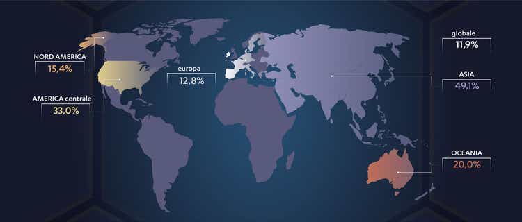 La frequenza di mutazioni dell’EGFR nei pazienti con NSCLC presenta variabilità geografica, con valori elevati riportati in Asia (49,1%) e valori più bassi in Europa (12,8%; figura 1).7
